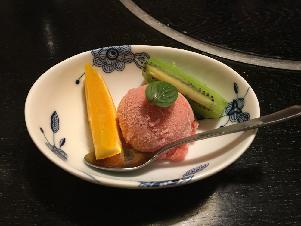 デザートのフルーツとシャーベット。フルーツは普通でしたが、シャーベットはかなり良かった。