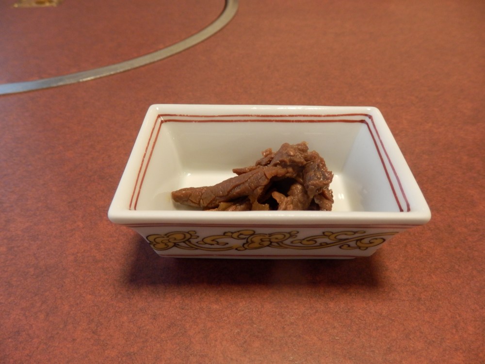 先付です。牛肉の佃煮的なものでしょうかね? なかなかおいしいですね。