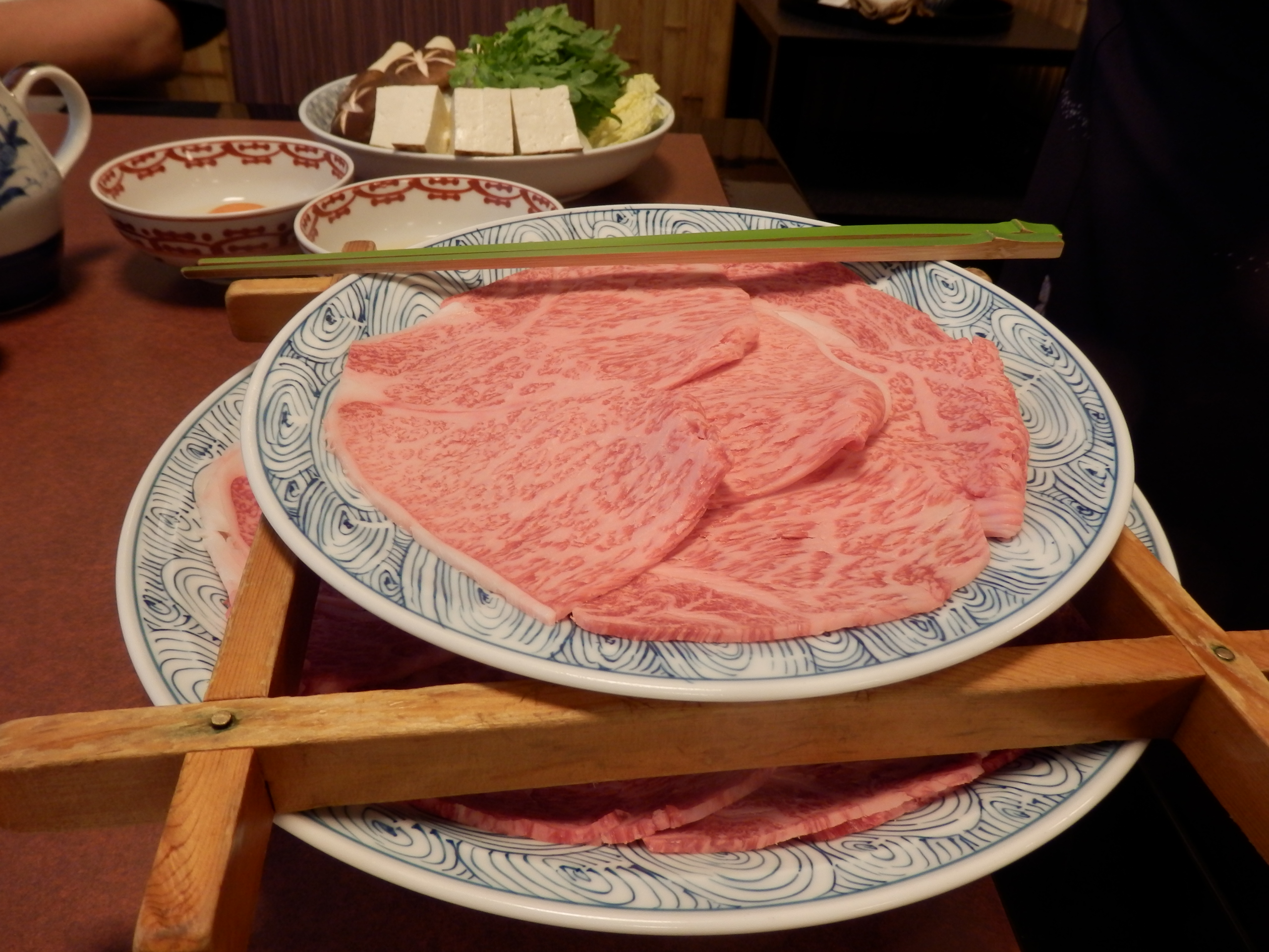 いよいよすき焼きです。うまそうな肉ですねぇ。