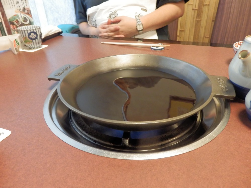 焼いている様子は一番最初の写真を見ればわかるように本当に煮る感じではないですね。それと火加減が強くないので割り下がすぐに煮詰まるというほどでもなく、なるほどこういうものかと感心しました。