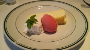こちらはデザートのニューヨークチーズケーキとシャーベット。このニューヨークチーズケーキはなんとニューヨークから送ってきているとのこと。かなり濃厚でねっとり。それにかなりの大きさ。こんなところにもアメリカの雰囲気を感じました。ワインもいいのがそろっているようでしかも結構リーズナブルな値段だったのもいいですね。プライスリストをみるとグラスで2000円前後ですが量は結構ありました。