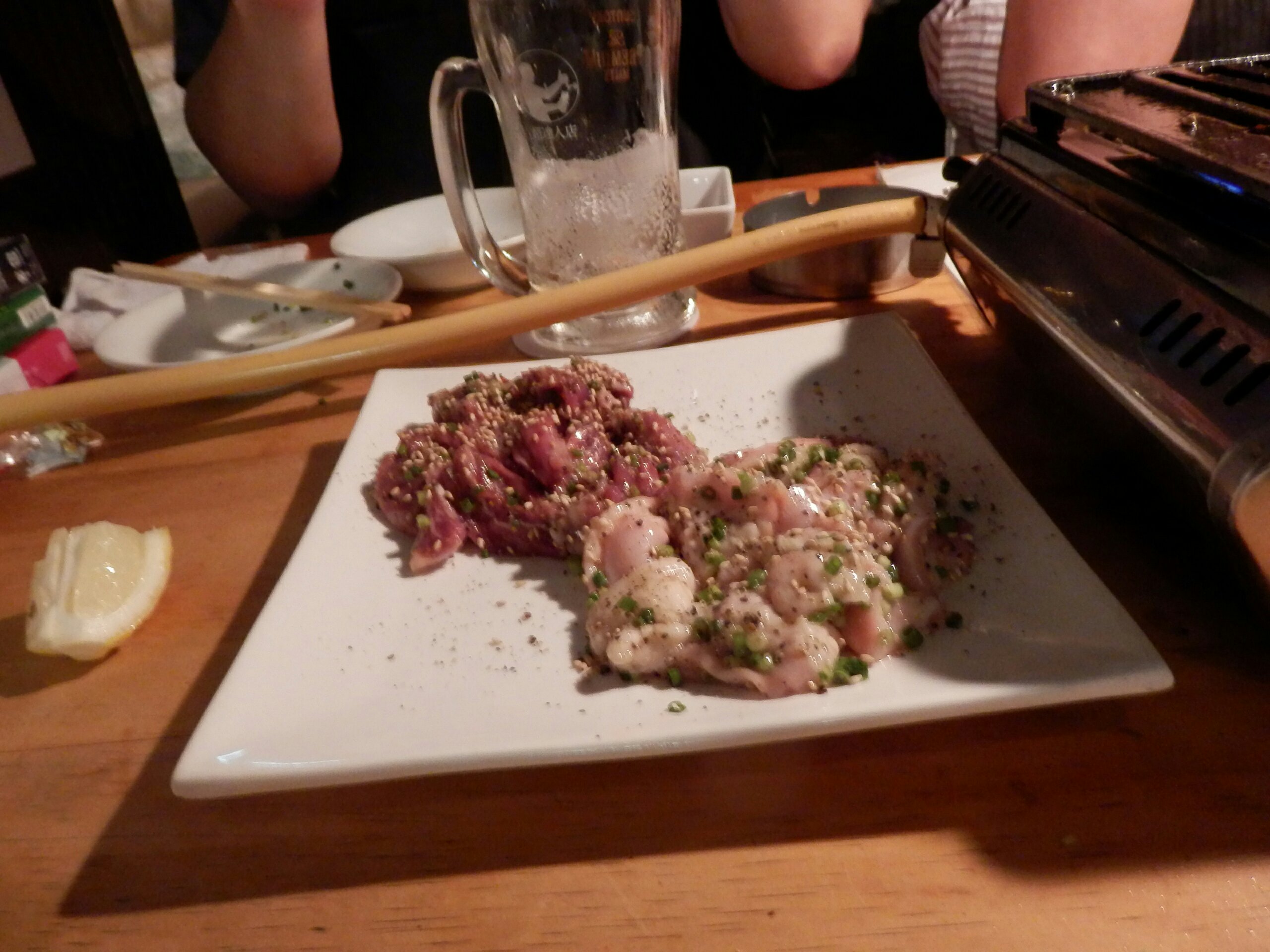 つづいてホルモン。手前がたしかハツ、右が多分コプチャン、奥は何だっけ?