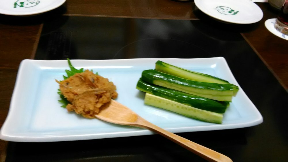 これはもろきゅうですがこの味噌はかなりおいしいですね。力士みそって呼んでいるようです。