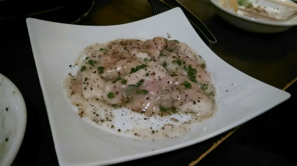 続いてセンマイ刺し。よく頼みますが、これは酢味噌っぽくないです。恐らく別の味付けでしょうがおいしですね。