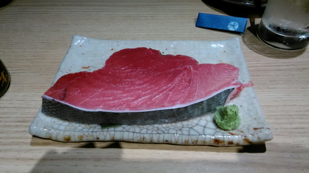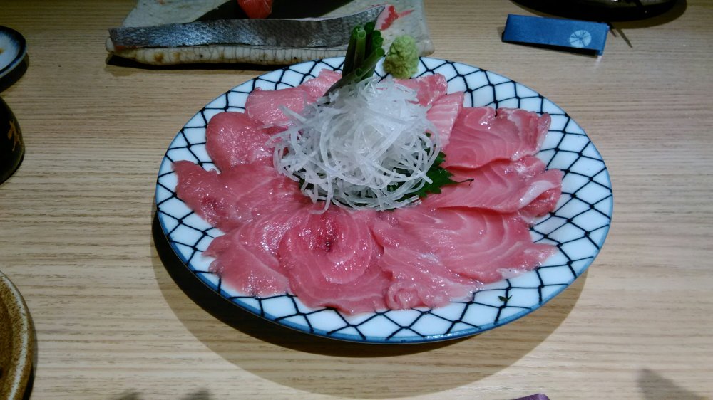 これは鮪の刺身です。写真では分かりませんがちゃんと切れてます。