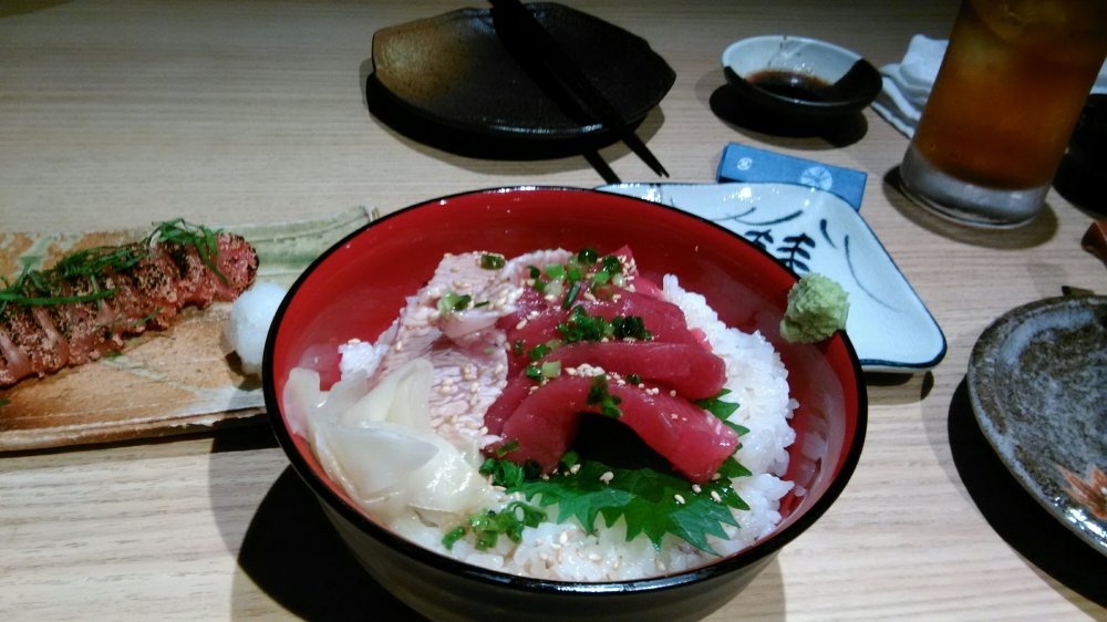 個人的には、最後の締めが一押し。しかもこのどんぶり1000円しかしないのは割安です。炙りのとろと中トロのネタの質はかなりいいです。