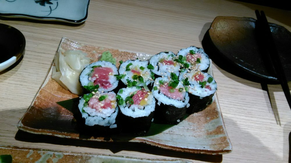 最後に締めとして鮪のどんぶり、海苔巻きに明太子です。これはどれも期待通りの旨さ。ちょっと食い過ぎで締めをたくさん注文できなかったのはあんまりでしたが。