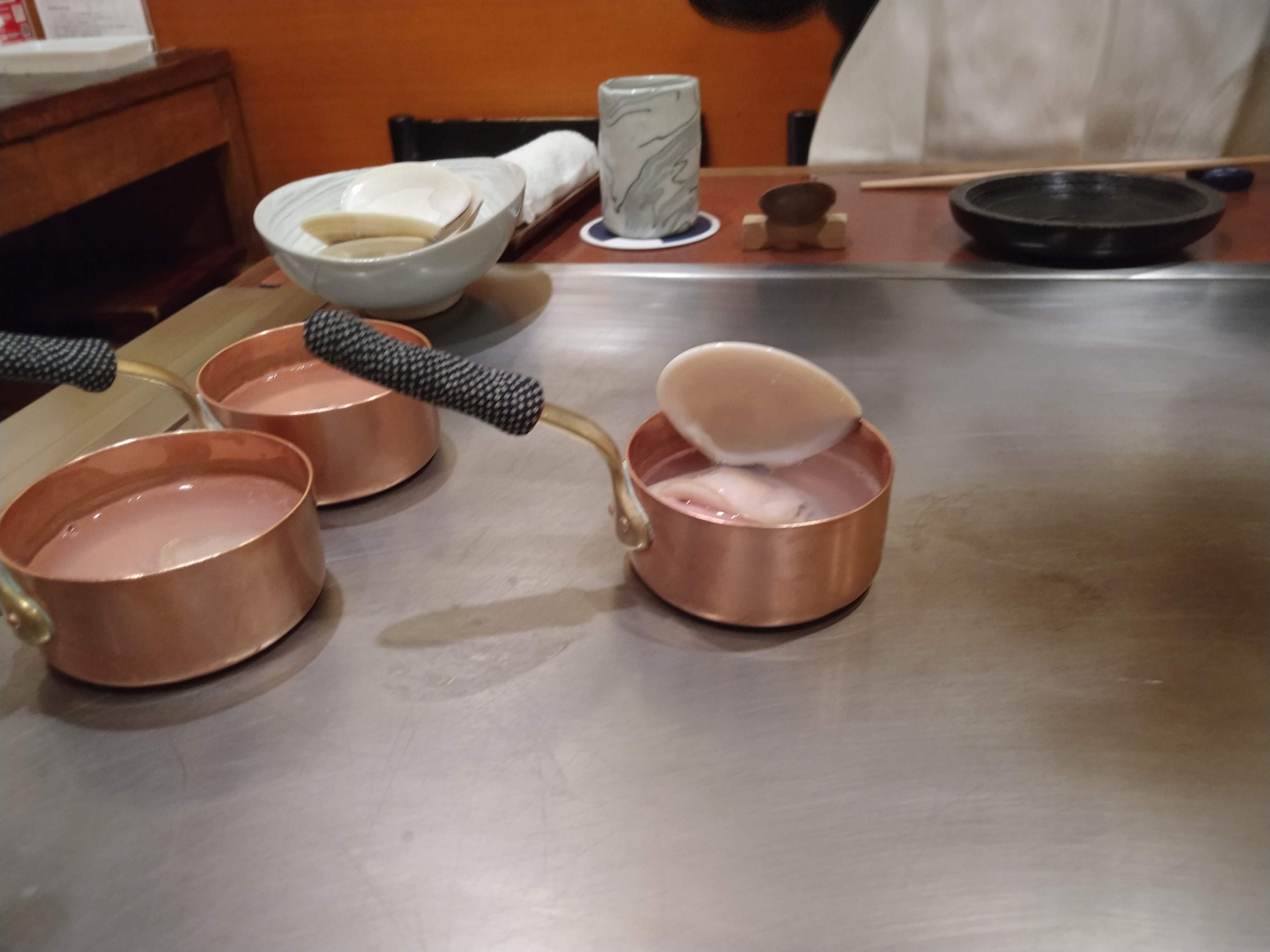 総合的にはいいには違いないが、多少割高感を感じたのは確かだ。そうはいっても和牛が高いしシェフもテーブルについて人件費がかかって贅沢なんだから当然だろうし、サービス全体を総合的に考えれば悪くない。しかし和牛を味わう点を重視するならば、和牛の焼肉なら味は同じぐらいでも値段はだいぶ安いし、同じ人形町今半でもランチタイムのすき焼きなら半額近いし他の選択肢もいろいろありそうな気がする。同じ和牛の他の鉄板焼きとくらべると、もっと高いところもあれば安いところもあり一概には言えない。今回は和牛は良かったが和牛以外の料理に対しては物足りない気がした。ただ他を良くしたらもっと高くなると言われるとそれまでだが。この分野での経験がもっと必要だろう。