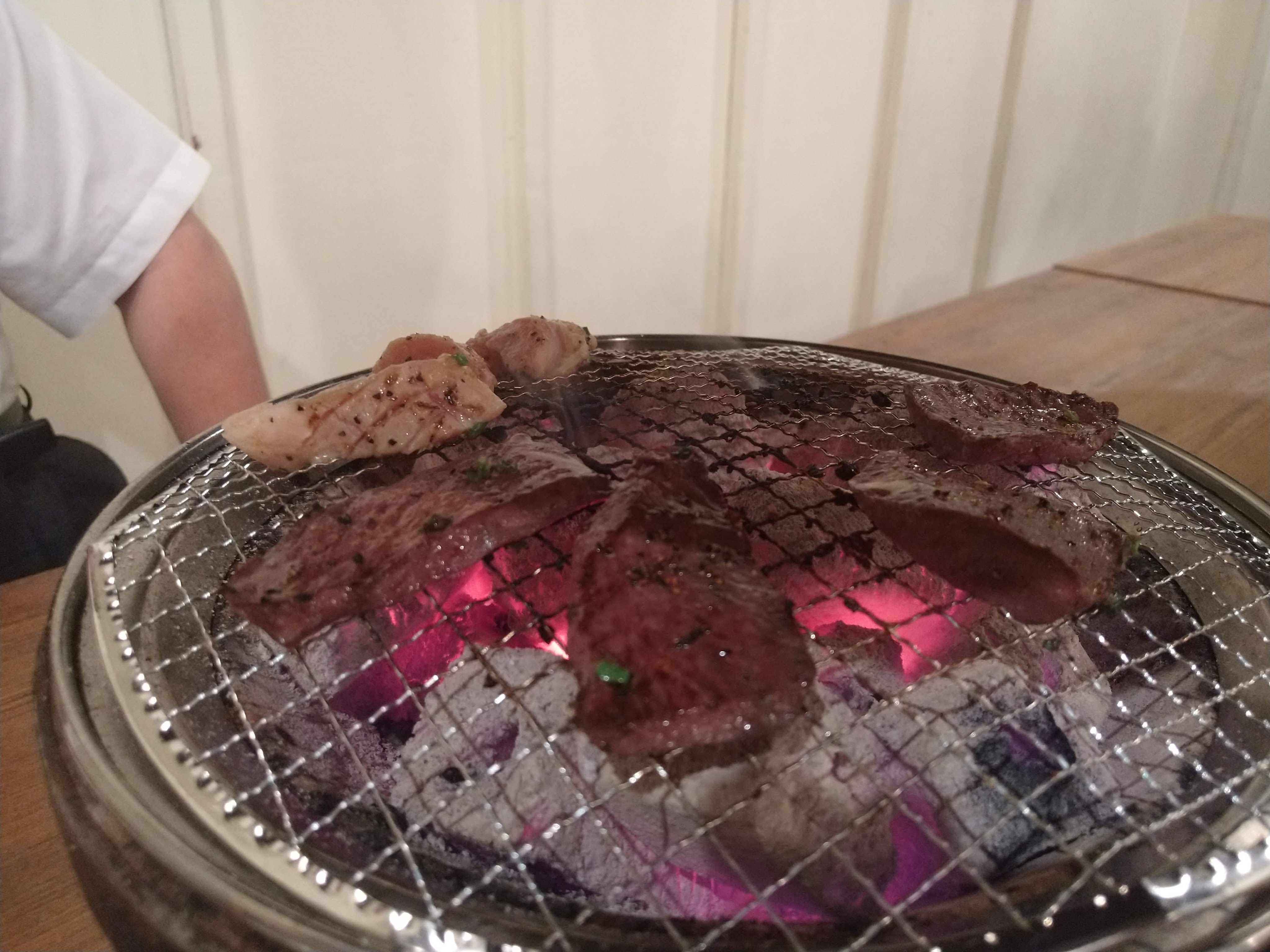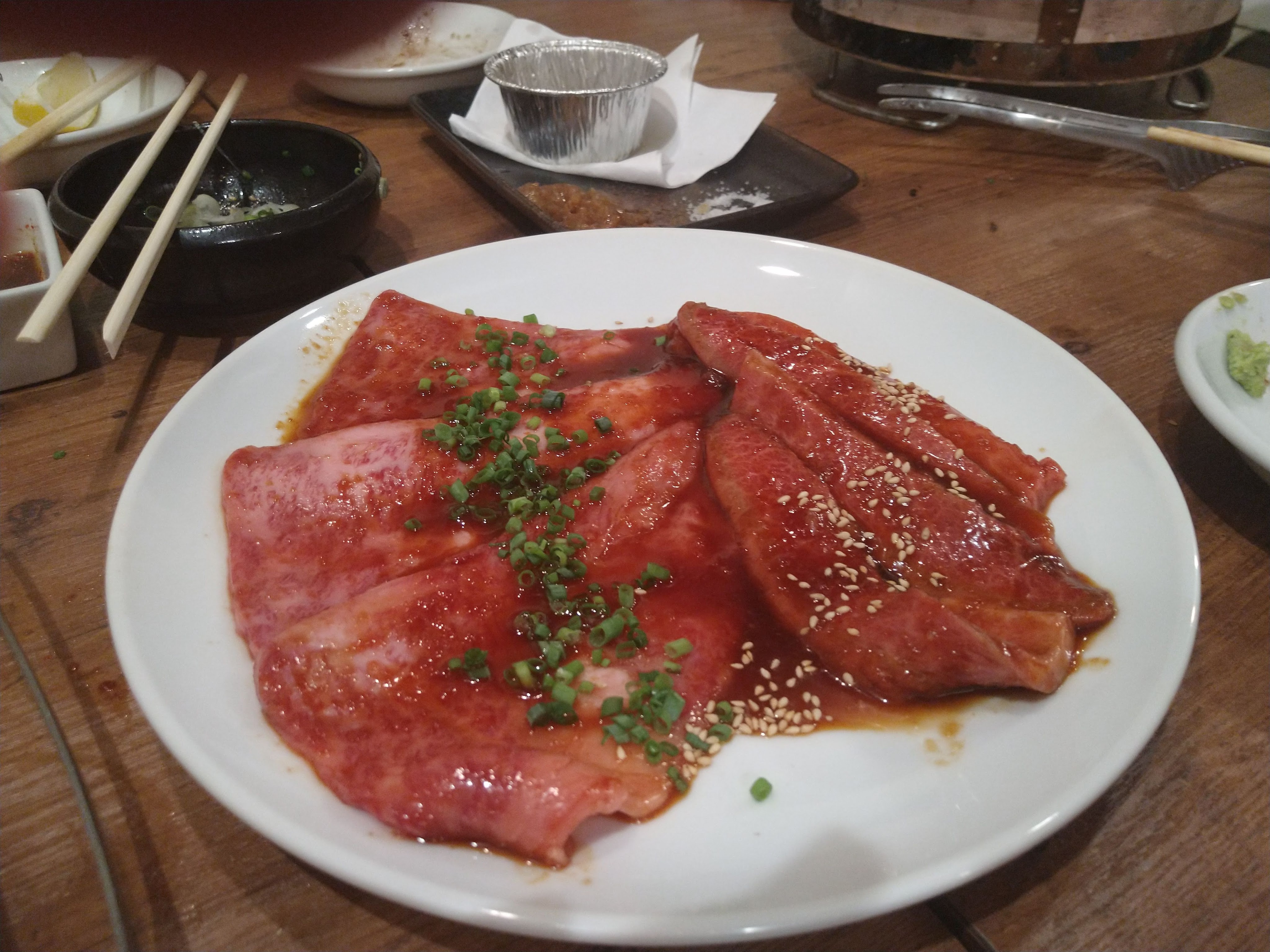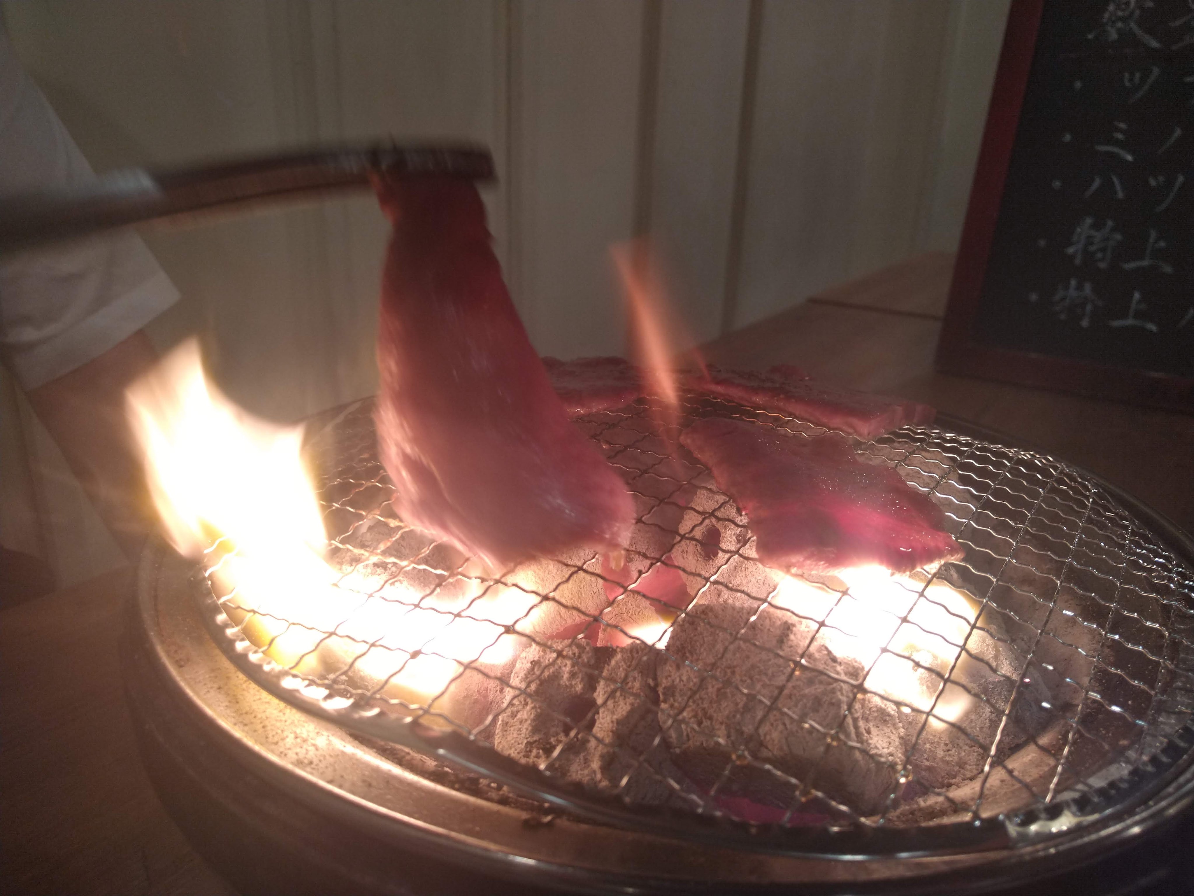 こちらは、右が特上ロースで、左は特上カルビ。どれも一切れ約千円です。左の特上カルビはいいとして、それに比べても右の特上ロースの一切れは千円にしてはかなり小さいのが難点。さすがに小さすぎな気がします。もちろん仕入れが高いから仕方がないんでしょうが、上や並みでもかなりおいしいと思われるので、そちらで十分かもしれません。