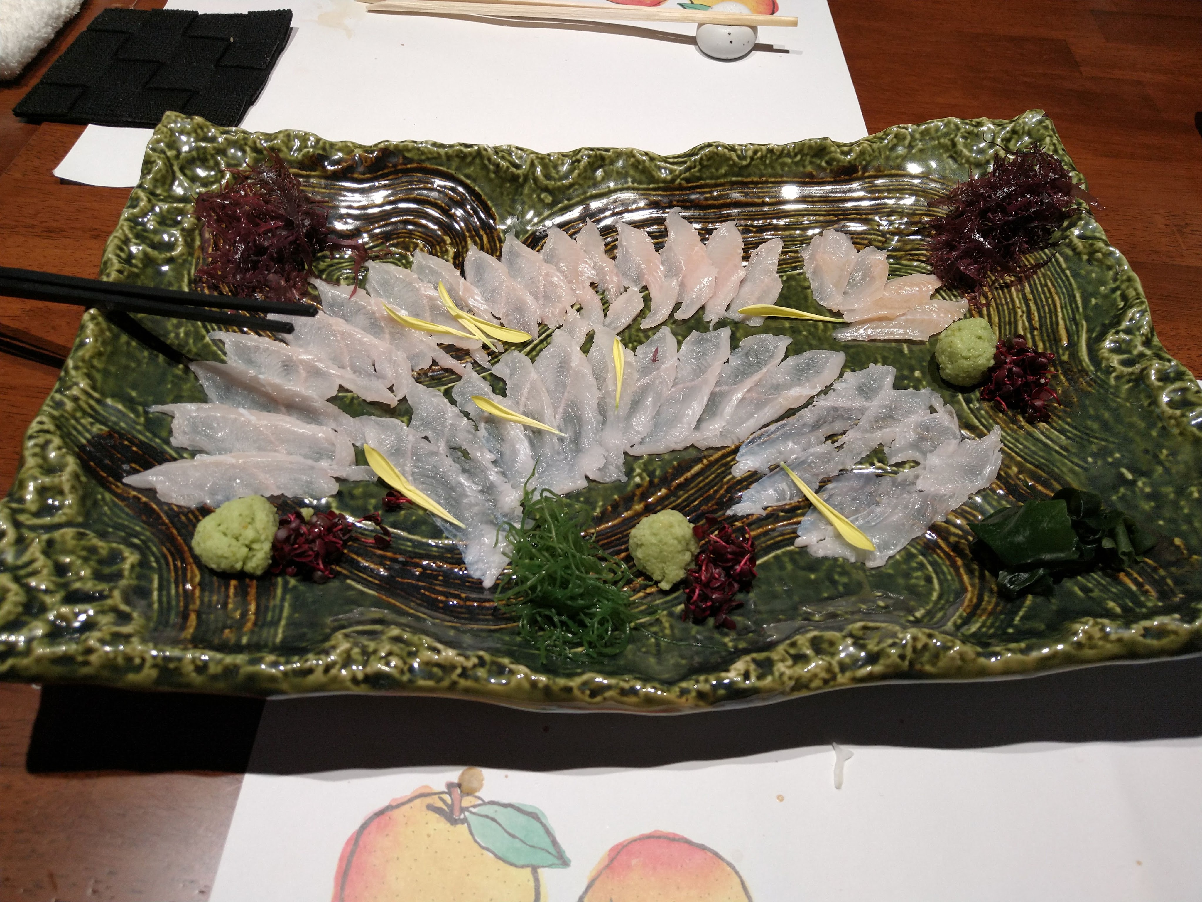 あなごが水槽にいたので注文しました。ちなみに手前の魚はクエだそうです。さっきのアワビはこの水槽のだったのか?聞けばよかった。
