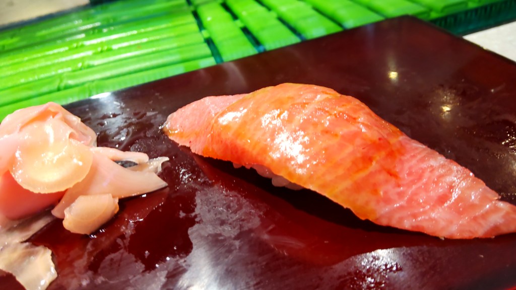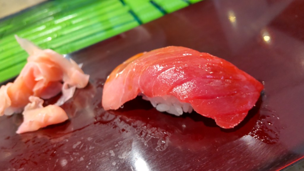 もうだいぶ日が経ってしまってあまり覚えていませんが、当然ながら鮪ですね。おそらくこれは大トロかと思います。最後にもう一度頼んだのがあるのですが、写真で見るとほぼ同じです。