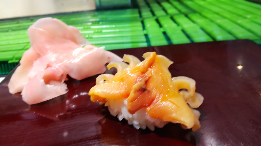 続いて、別の貝ですが、確か、アレだろうというのはあるのですが間違えると恥ずかしいので書きません。噛むほどに味がしみでる大変おいしい貝でした。歯ごたえもしっかりしている。こういうのはさすが豊洲と言えるのかもしれません。