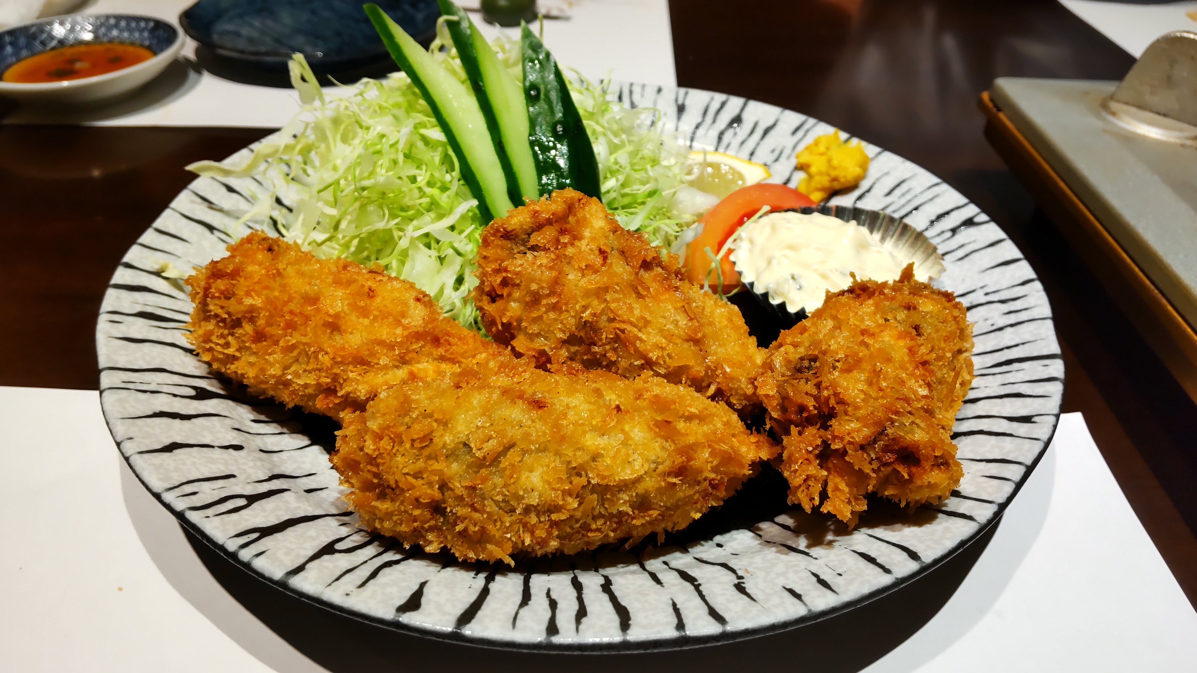 ほぼお約束のカキフライ。かなり大きくていまだにこれに匹敵するカキフライは見たことがないです。