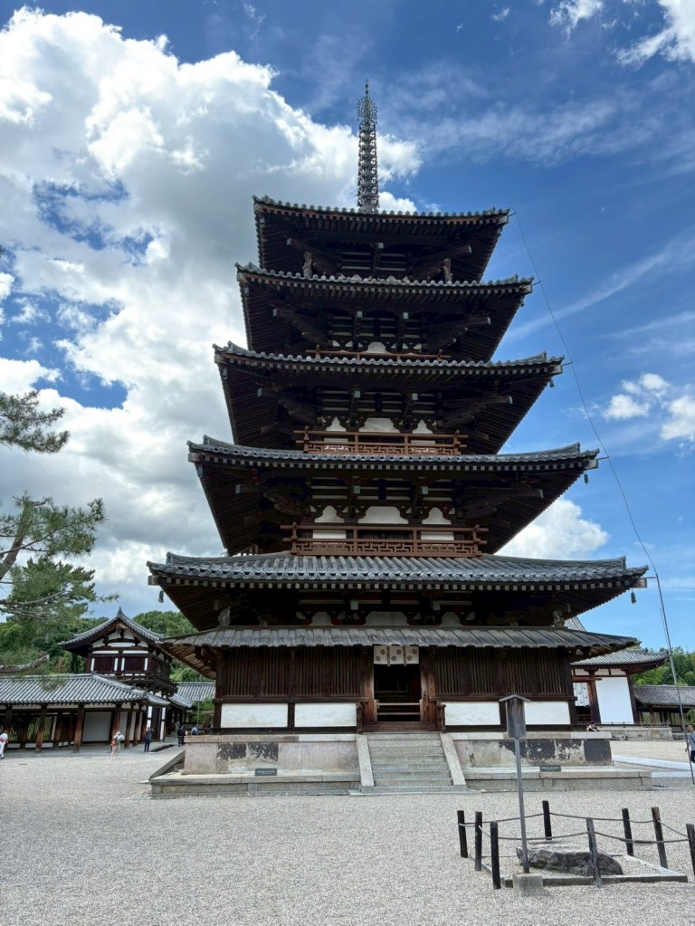 少し走って法隆寺に来ました。 東大寺からは結構時間かかります。見るからに、様式が東大寺とはだいぶ異なる気がします。時代がかなりさかのぼるからと思います。
