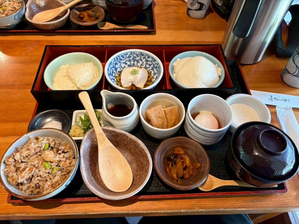 伊勢神宮参拝途中の趣の深い五十鈴川沿いの豆腐屋さんにてランチ。